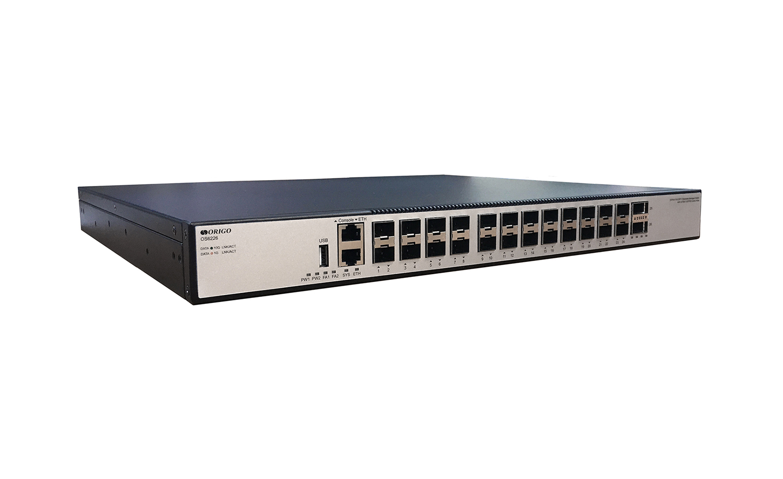 The ORIGO OS6226 is a high-performance L3 managed switch with 24x10G SFP+ and 2x40G/100G QSFP28.