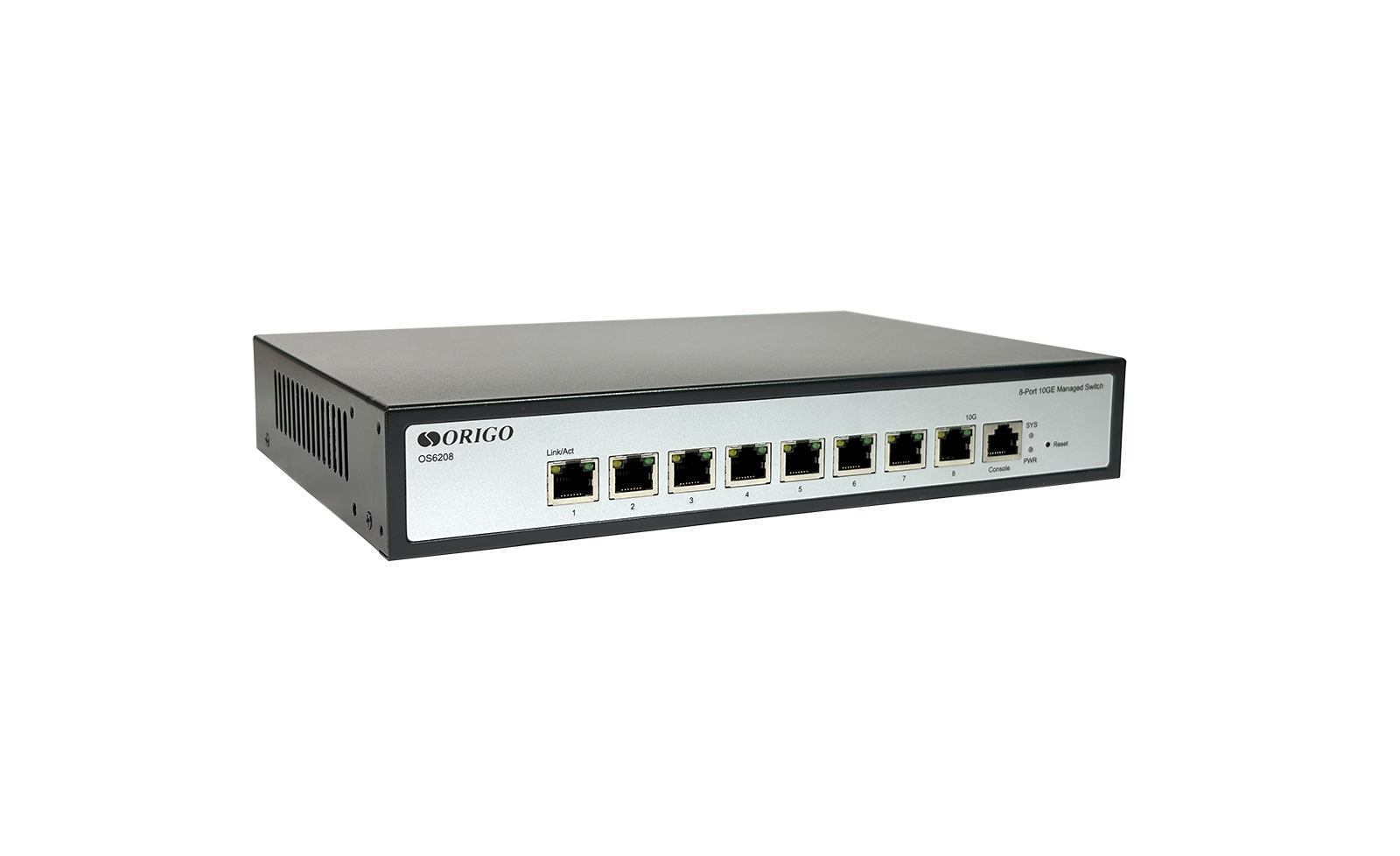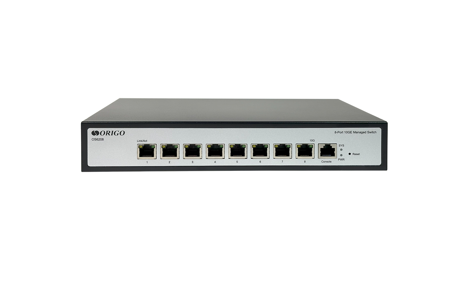 The ORIGO OS6208 is a high-performance L2 managed switch with 8 x 1000/2.5G/5G/10GBase-T ports.