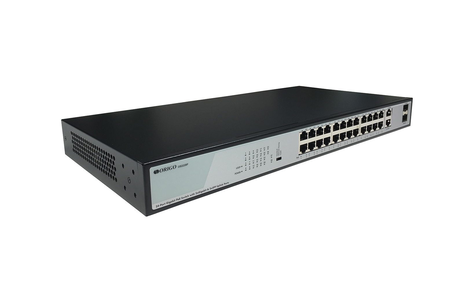 The ORIGO OS2228P/370W switch is recommended for building of small and medium enterprises' networks that need a modern gigabit solution to increase bandwidth at level of aggregation and organization of remote power supply to surveillance cameras, wireless access points, IP phones and other PoE devices.
