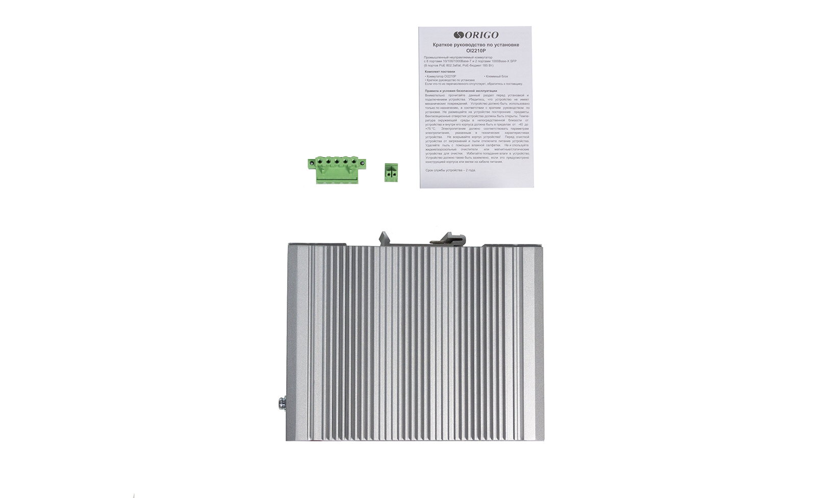 The ORIGO OI2210P/185W switch is designed for building Gigabit data transmission networks and powering high-power PoE equipment at sites with strict environmental requirements.