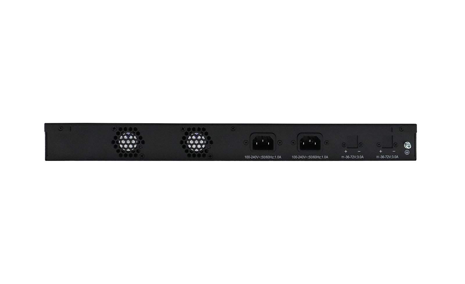 The switch comes with dual 220V AC power supply units in a redundant configuration. If one fails, the other seamlessly maintains power, ensuring continuous system operation.
