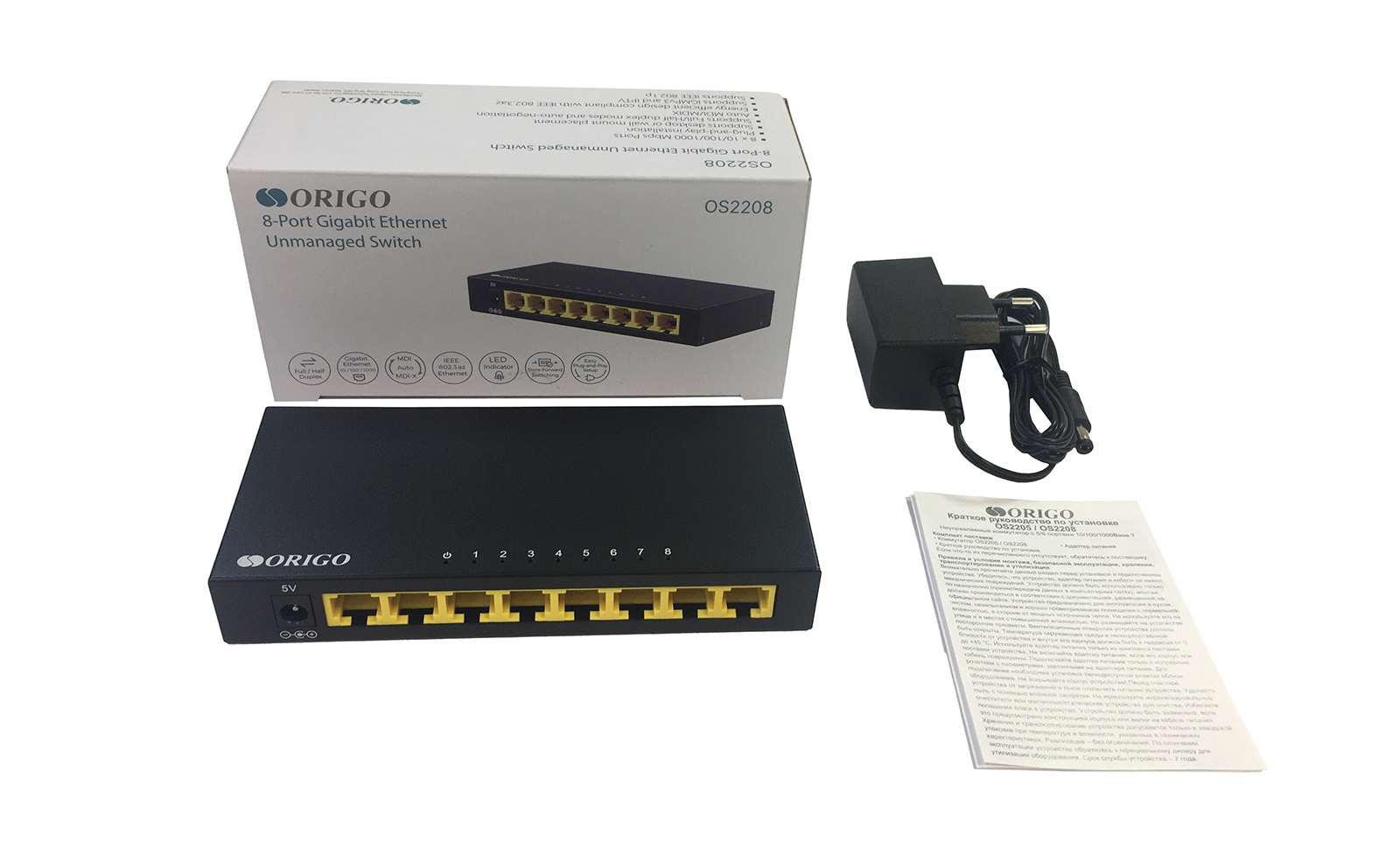The ORIGO OS2208 switch is an affordable gigabit solution for extending home wired network and connecting small workgroups on enterprises, in offices, classrooms and medical facilities.