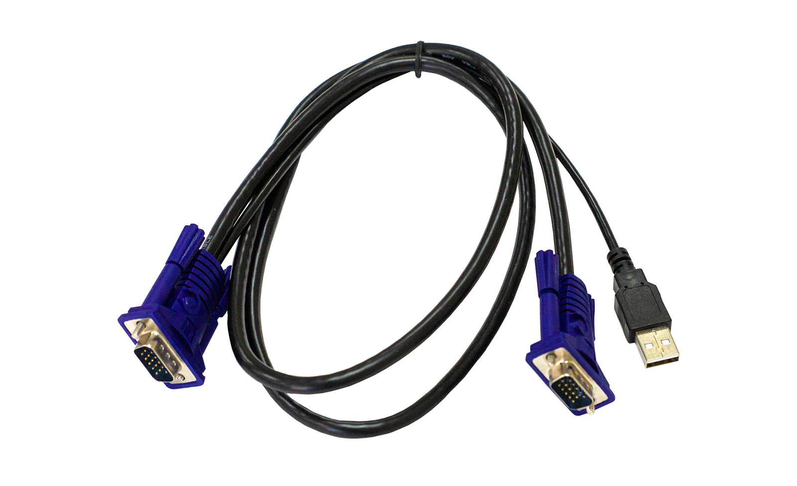 The cable has the USB Type-A connector for connecting to the USB Type-A port on your computer and the HDB-15 connectors for connecting to the VGA port on your PC and on the KVM switch.