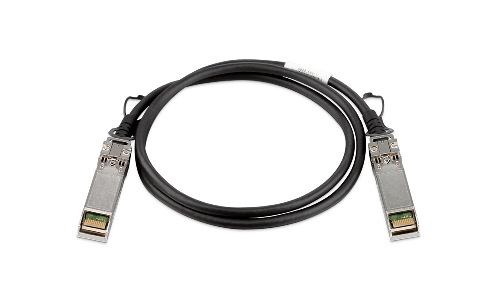 The OFM-CB100S is a 30 AWG twinaxial cable with 2 hardwired SFP+ connectors. The maximum data rate is 10 Gbps.